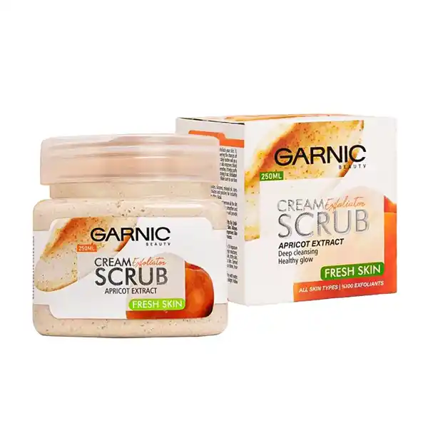 ویژگی های اصلی کرم اسکراب گارنیک زردآلو مناسب انواع پوست 250 میل :